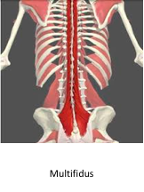 fills up the groove on either side of the spinous processes of the vertebrae, from the sacrum at the bottom of the spine to the top most vertebrae. Multifidus helps to stabilise the joints within the spine.
